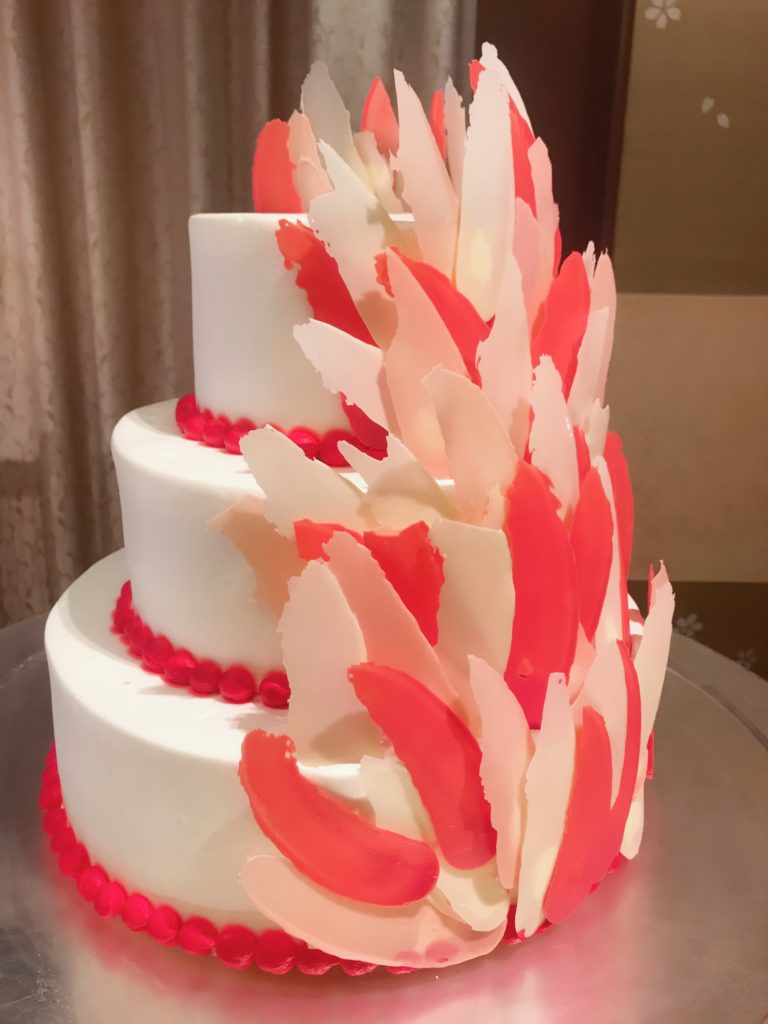 2020.10.18 ブログ ロシア発デザインケーキ ピンクのフェザーシャワーを纏ったような美しいウェディングケーキ。 絵の具の筆の軌跡をデザインしたこのケーキは ロシア生まれの「ブラシストロークケーキ」と言います。 羽のようなプレートはチョコレート。 ウェディングは、セレモニーもアイテムも、その在り方も、時代とともに変化していきます。 エンコーポレーションは常にアンテナを張り、 そのセレモニーが、そのアイテムが、より引き立つブライダルMCで 素敵なご披露宴のお手伝いを致します。